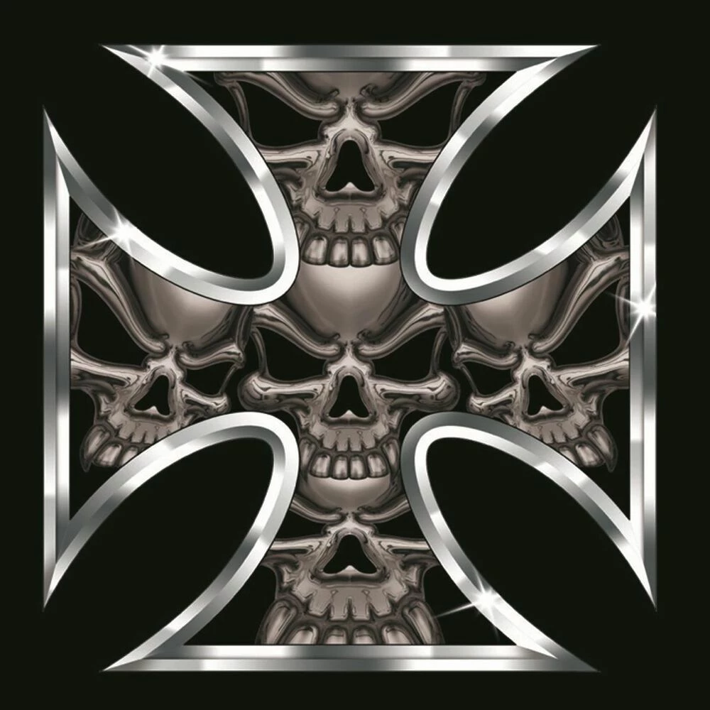 Hot Stuff Sticker Iron Cross Skull, Chrome