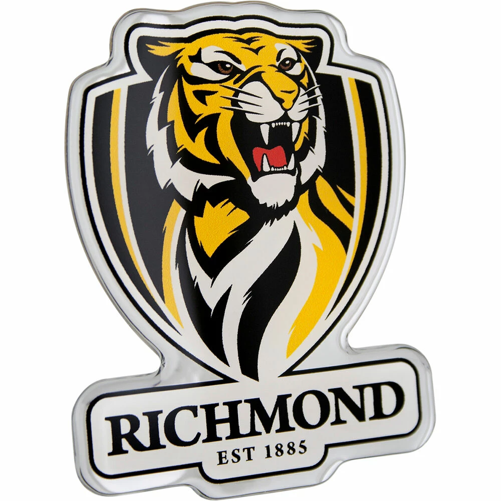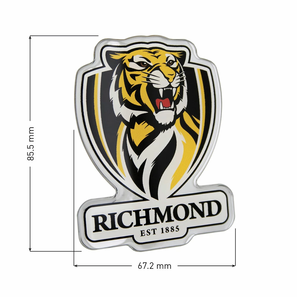 Show off your team pride with the Richmond Tigers AFL Supporter 3D Chrome Logo. The super strong Peel-N-Stick backing adheres quickly and easily to most smooth surfaces like cars and laptops, and is backed by a 5 year guarantee on indoor and outdoor applications. The coated 3D finish is designed to stand up to the harsh Australian sun, ensuring that the finish on this Richmond Tigers logo remains clear and sharp for the long run.