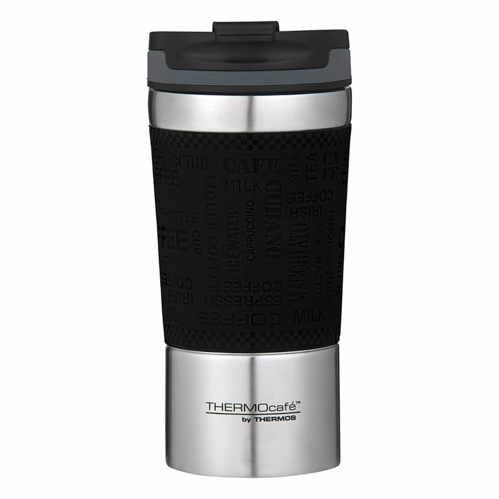 Avoid spills and keep your beverages at the perfect temperature with the Thermos Thermocafe Travel Tumbler. Featuring double wall, stainless steel construction, the Thermocafe Travel Tumbler will keep your hot drinks hot and your cold drinks cold. The non-slip rubber handle makes transporting your tumbler a breeze while protecting your hands from hot surfaces. Best of all, the Thermocafe Travel Tumbler is designed to fit into most automotive cupholders.