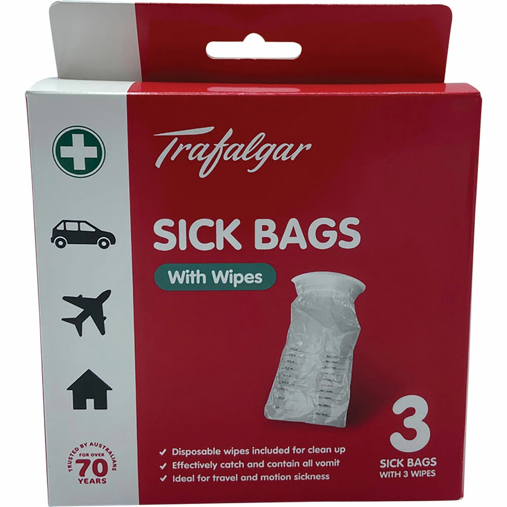 Trafalgar Travel Sick Bags & Wipes 3 Pack