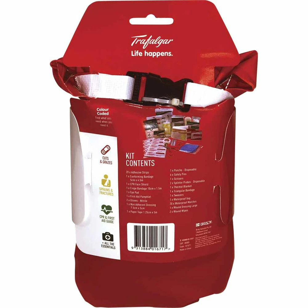 Keep your first aid contents dry and ready to use when you need them most. This handy Go Anywhere waterproof first aid kit can be easily snap locked onto your backpack or kept in storage compartments. Ideal for the adventurer this kits contains all your essentials including waterproof matches, poncho as well as items to administer Cuts, Abrasions, Sprains, Fractures, CPR and Rescue as well as other essential items such as safety pins, tweezers and splinter probes.